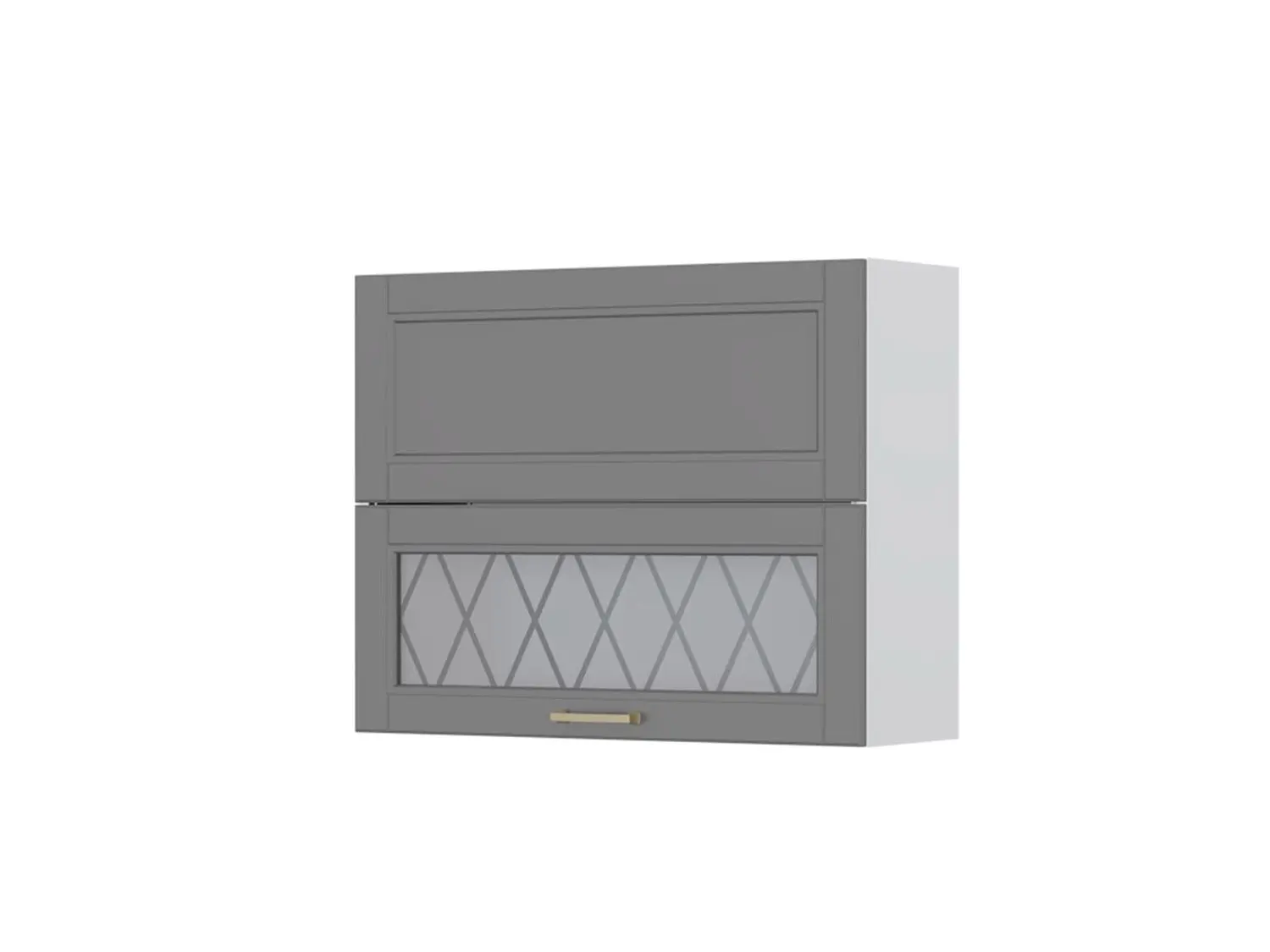 -Viseći kuhinjski element iz kolekcija Tara sa jednim staklenim i jednim punim krilom, sa preklopnim otvaranjem ,element ima dekorativno kaljeno peskirano staklo debljine 4 mm