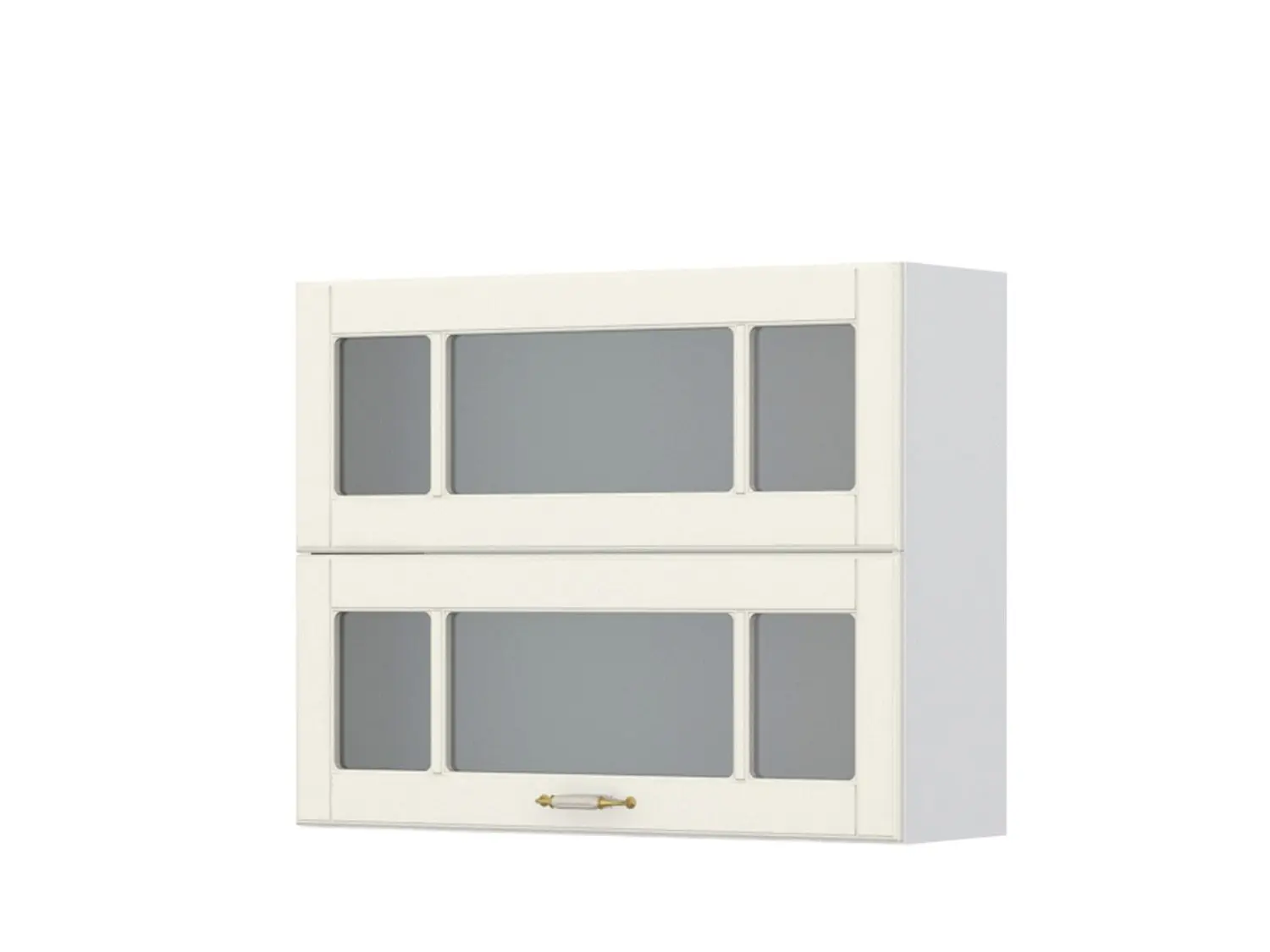 -Viseći kuhinjski element iz kolekcije Evergreen sa dva staklena krila sa preklopnim otvaranjem ,element ima dekorativno kaljeno peskirano staklo debljine 4 mm